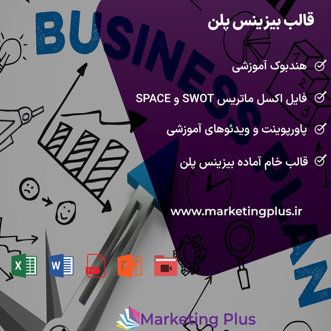 قالب بیزینس پلن آماده (طرح کسب و کار) شامل مجموعه ای آموزشی ، فایل PDF ، پاورپوینت به همراه ویدئوی آموزش بیزینس و فایل اکسل ماتریس SWOT و SPACE می باشد.